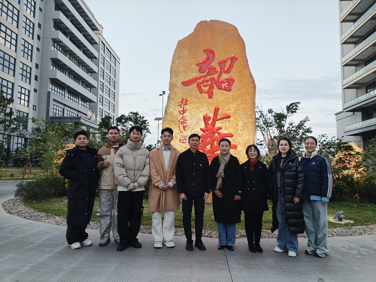 北海艺术设计学院校长卢新华(左七)和学院调研组一行、校友合影
