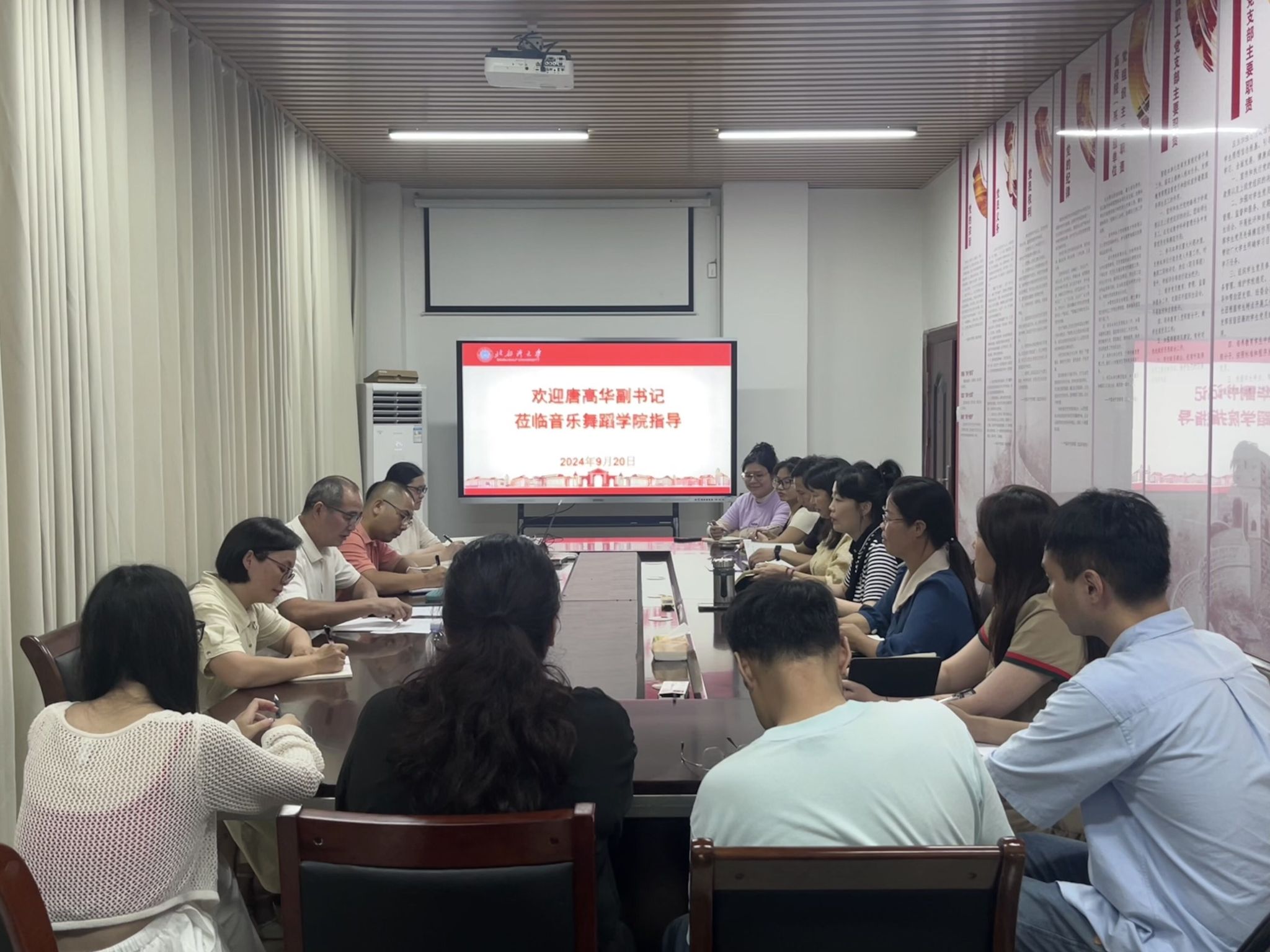 会上,唐高华副书记首先肯定了音乐舞蹈学院自成立以来在招生就业、专业设置和师资建设等方面所取得的成绩。他强调,音乐舞蹈学院未来要重点关注学生的就业率、升学率、出国率和获奖率,要在“四率”上做到协同发展。此外,学院应深入挖掘自身基础优势,明确特色定位,将党建工作深度融入学科建设之中,以党建引领学院发展,打造具有鲜明特色的党建品牌。最后,唐副书记鼓励学院以本次音乐学师范专业认证工作为契机,奋力突破国家级项目申报、硕士点建设、博士点培育及科研经费筹集等方面的瓶颈,不断提升教学科研水平,增强服务社会的能力,推动学院实现高质量发展。