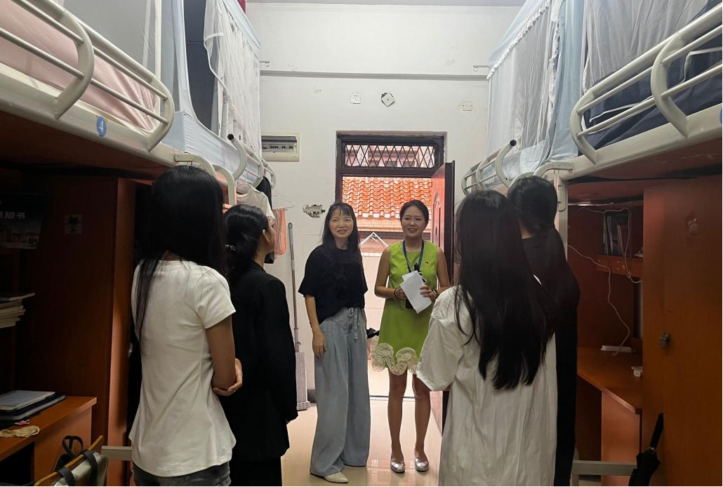 为切实了解2025级新生入学后的住宿情况与适应状态,筑牢新生宿舍安全防线,让新生感受到学院的关怀与温暖,9月7日下午,学院领导班子及各新生班主任、辅导员,深入新生宿舍,开展新生宿舍安全检查与慰问活动。