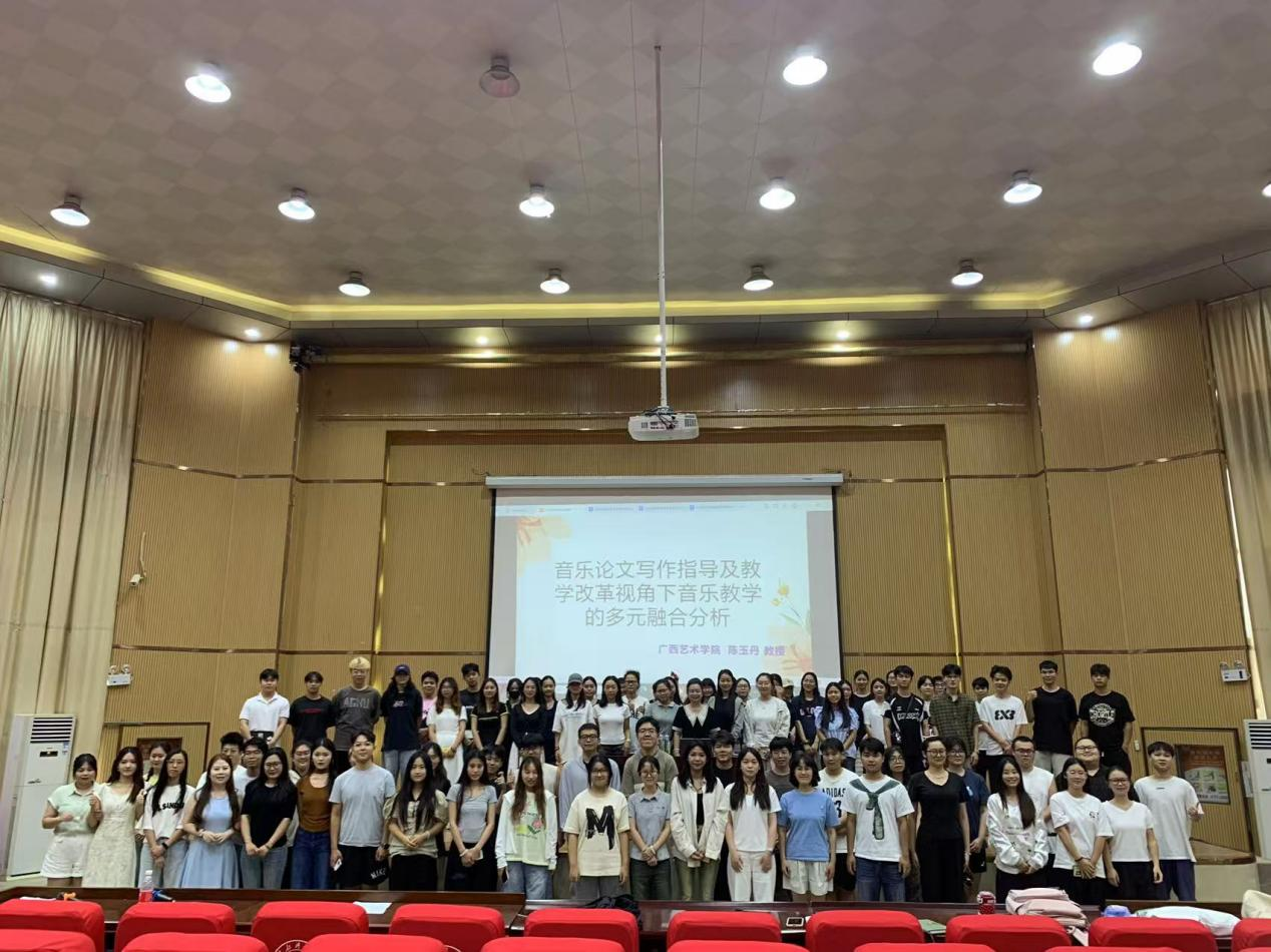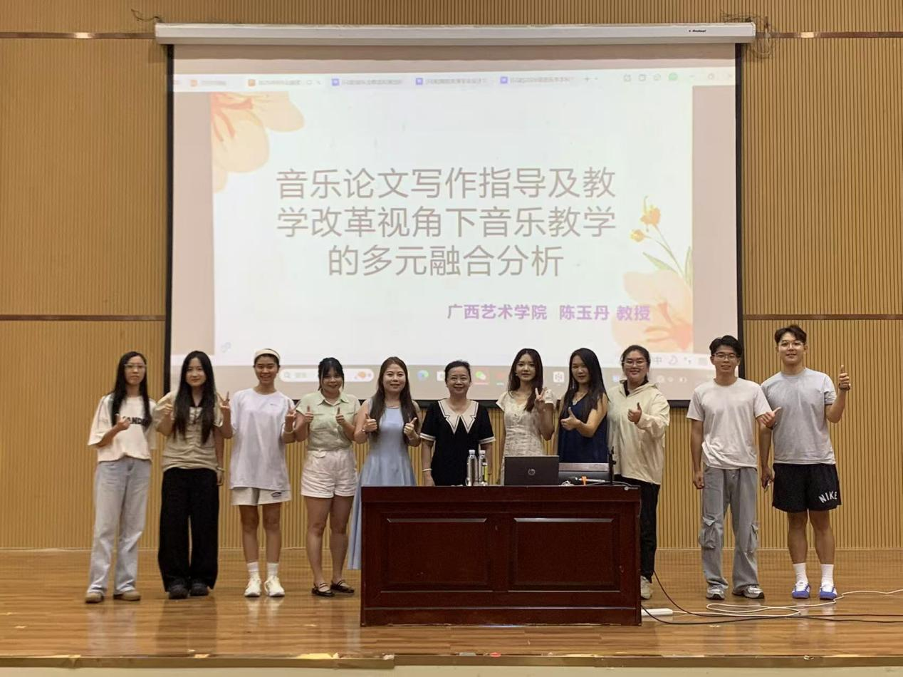 2025年9月16日下午,广西艺术学院陈玉丹教授专题讲座《音乐论文写作指导及教学改革视角下音乐教学的多元分析》在4号教学楼一楼报告厅成功举行。